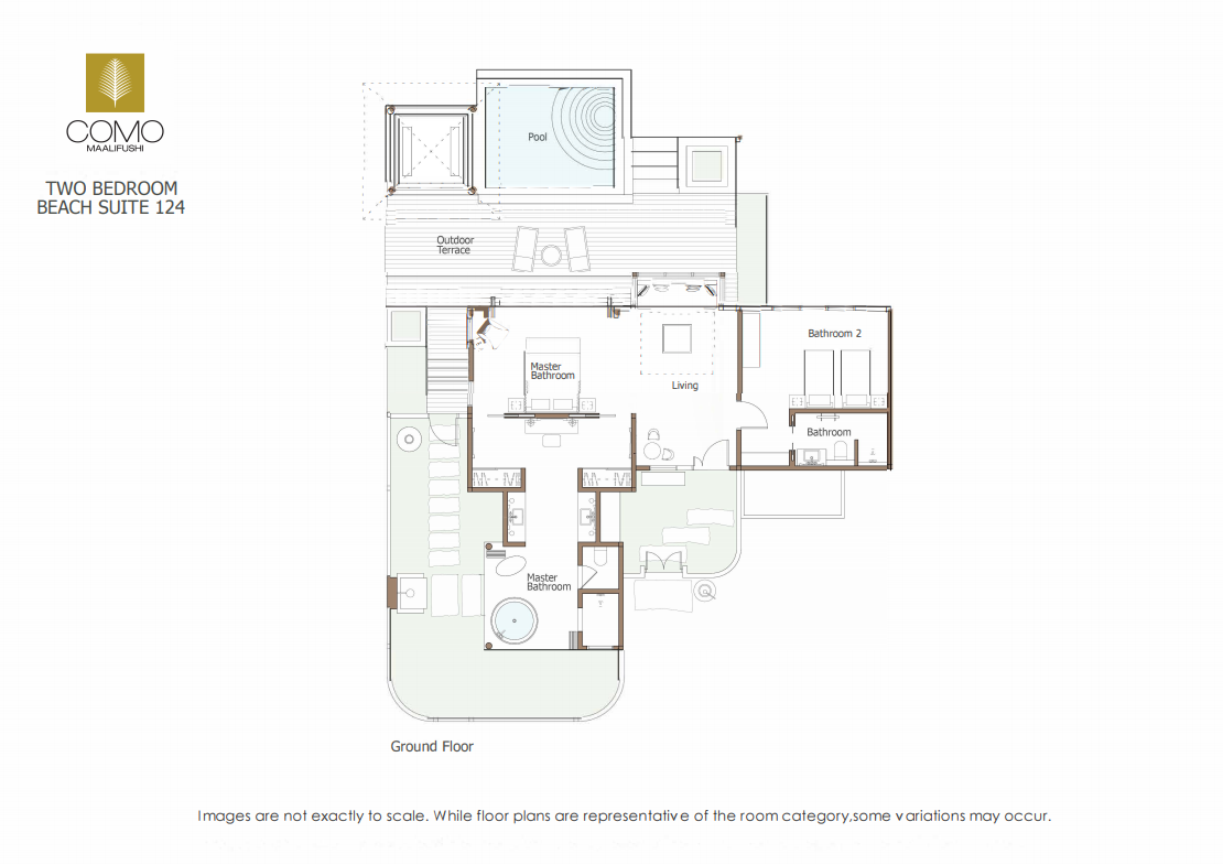 时尚套房掩映于阴凉处,除了设有两间卧室外,房间所配备的设施与 Beach Suite 并无二致。次卧内设两张单人床和面积较小的淋浴间,适合家庭入住。