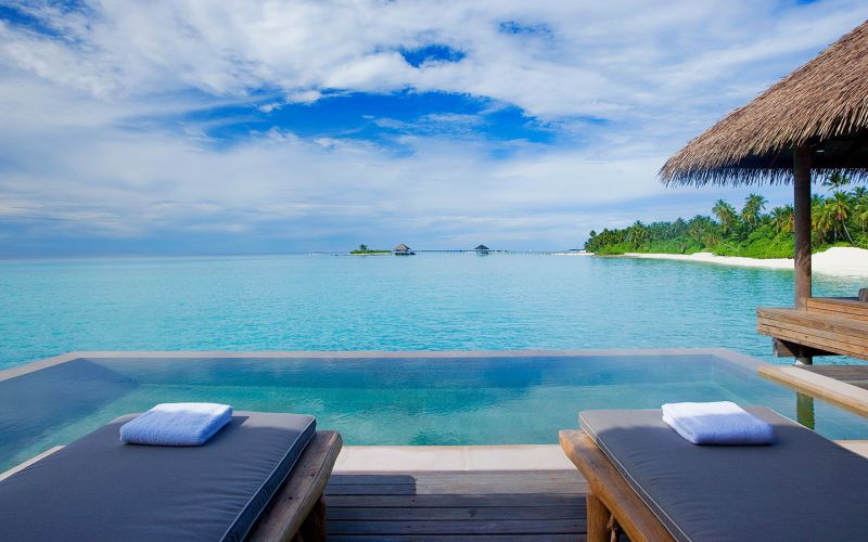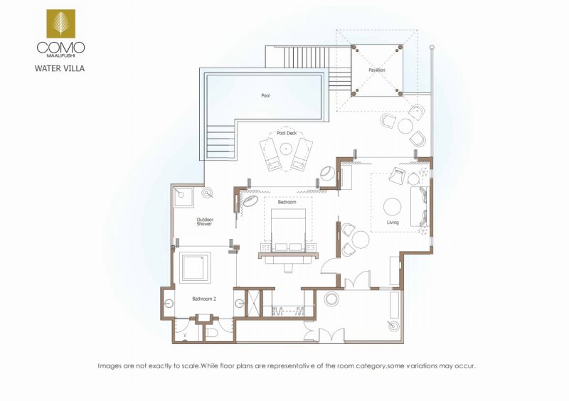 每间宽敞的水上别墅都设有私人泳池、阳光露台和落地窗,可俯瞰印度洋的迷人风光。卧室内设独立更衣区,浴室则配有下沉式浴缸和户外淋浴间。明亮宽敞的休闲区可兼作儿童睡眠区。