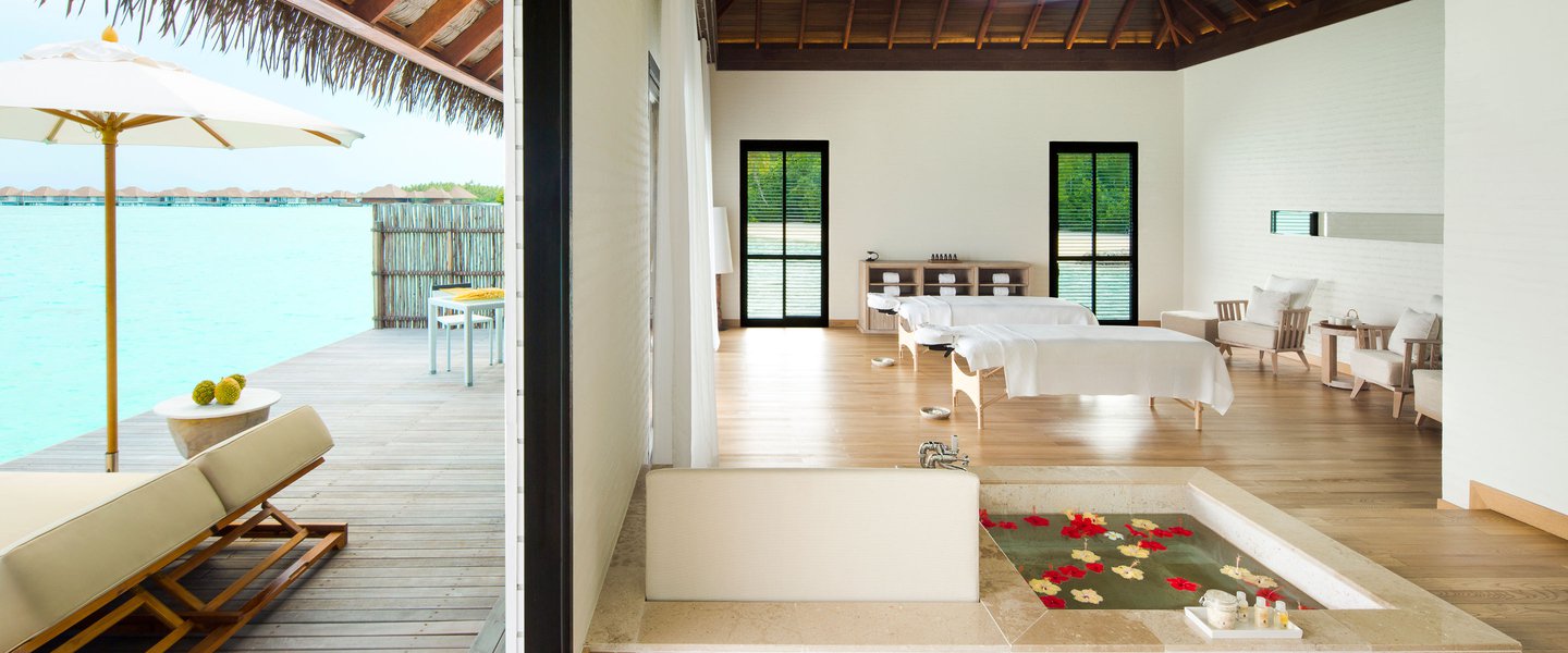 静谧祥和的水疗套房无一不可俯瞰印度洋的壮美全景,同时确保在私密的空间里尽享 COMO Shambhala 体验。每间套房均配有两张护理床、更衣区和通往私人阳光露台的过道。所有 COMO Shambhala 体验均包含一款特色养生果汁,这些果汁分别针对身体的某个部位而特别调制,非常有益身心健康。