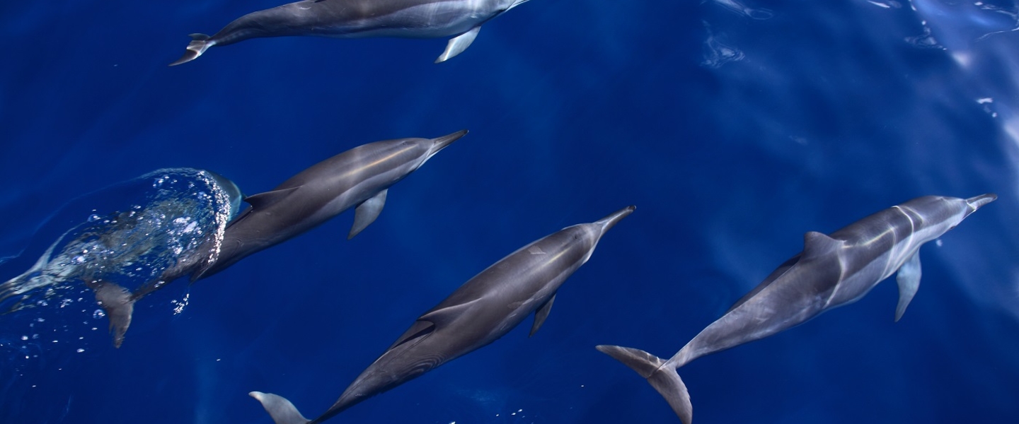 扬帆出海,观赏野生海豚迁徙队伍游过环礁的壮观场景。海豚有时会跃出海面,在空中旋转后落下;有时则可能靠近船只,迎着船头的海浪与我们同行。此外,还可一边享用香槟和可口小食拼盘,一边饱览美丽的日落全景。