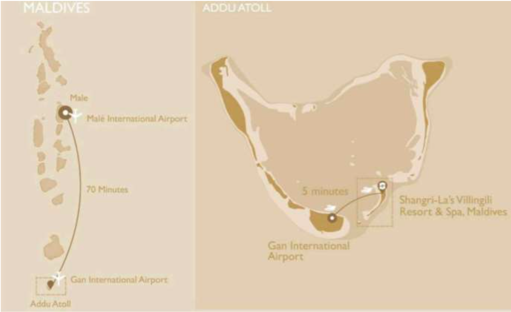 马尔代夫香格里拉岛上岛方式是先内飞再转快艇,你可以从马累国际机场出发,也可以从斯里兰卡科伦坡直接出发上岛。