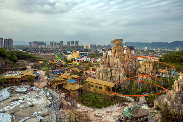 重庆融创渝乐小镇一期总建筑面积约7万平方米,拥有四大主题街区、六大明星设备、20余项激情人气娱乐项目,是集游乐设备、科技体验、特色餐饮、主题商店、精彩演艺于一体的高品质娱乐小镇。包含室外乐园、水世界、雪世界、海世界、渝秀五大精品游乐业态。小镇开放式、主打夜场的经营模式,将颠覆传统乐园一票入园的游乐方式,将带来前所未有的文娱玩乐体验。