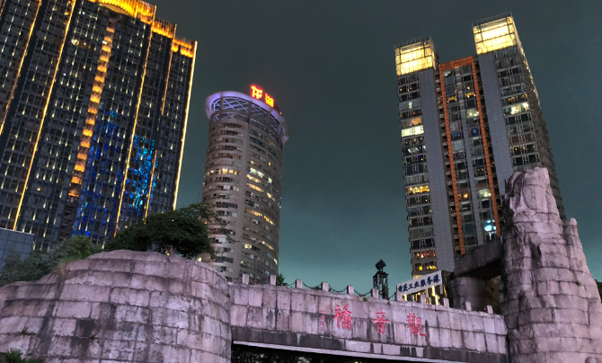一、解放碑,二、洪崖洞,三、观音桥等。其中解放碑又名“抗战胜利纪功碑”、“人民解放纪念碑”,简称“解放碑”。位于重庆市渝中区解放碑商业步行街中心地带,是抗战胜利的精神象征,是中国唯一一座纪念中华民族抗日战争胜利的纪念碑。