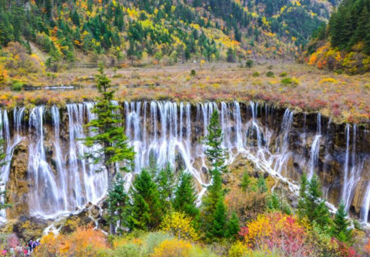 九寨沟四季景色迷人。动植物资源丰富,种类繁多,原始森林遍布,栖息着大熊猫等十多种稀有和珍贵野生动物。春天的九寨沟冰雪消融,绿水荡漾,山花盛开。
