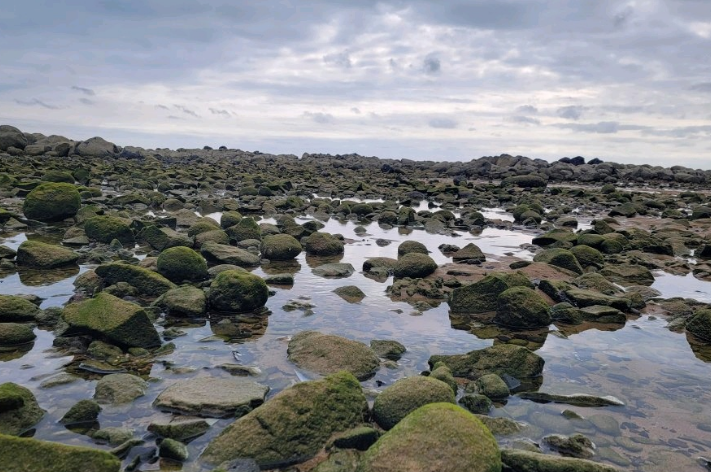 三、海石滩海石滩是一条百多米长的沙滩,两旁环抱着黑色的火山熔岩礁石,像一个巨大的“凹”字。千万年前的火山在这里喷发,滚烫的熔岩遇到空气和海水冷却后,形成了这些嶙峋的黑色石头。