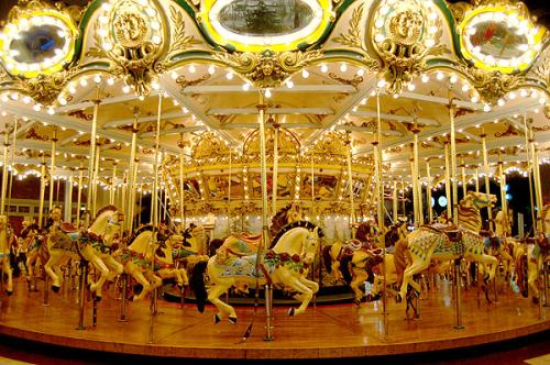 一般经常会看到的是旋转木马,在影视剧里也经常出现。