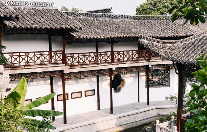 何园将廊道建筑的功能和魅力发挥到极至,虽是平地起筑,但却独具特色,其间回廊曲折、假山贴墙、鸟栖庭树等无一不令人慨叹,素来有“城市山林”之说,更被誉为“晚清第一园”,为扬州住宅园林的典型,是国家AAAA级旅游景区,全国首批20个重点公园之一,1988年被列为第三批全国重点文物保护单位。住宅部分主要由一座面积约160平方米的煦春堂(楠木大厅)和两座七开间的西洋楼组成。大厅分正厅、耳厅,是本市尚存最大最完整的楠木厅,两座西洋楼,又称玉绣楼,计28间,门窗采用双层楠木百叶式西洋格调,室内置壁炉、吊灯、拉门,中西合璧,新颖别致。