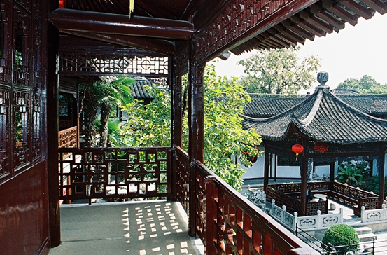 何园复道回廊特点:回廊,扬州人俗称串楼,分上、下两层,它将东园、西园、住宅院落都串连在一起,游客即使在雨天,也免遭淋漓之苦,尽情欣赏全园美景。廊的东南两面墙上开有什锦洞窗和水磨漏窗,绕廊赏景,步移景异。