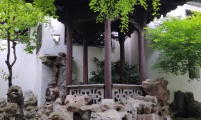 轩背置小院,沿磴道可达复道廊,即由楼后转入隔园。园在火巷尽头住宅之后,原以复道与山石相连,折向西北,有西向楼三间,面峰而筑。楼有盘梯可下,旁有紫藤一架,老干若虬,满阶散绿,增色不少。后园昔有望月亭、紫竹林等景观,逸圃与苏州曲园相仿佛,都是利用曲尺形隙地布设,但比曲园巧妙,形成上下错综,境界多变。采用“绝处逢生”的手法,由小院转入隔园,来一个似尽而未尽的布局。可惜假山、半亭、碧潭、复道廊等均已不存。