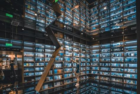 陀螺书架、镜面吊顶以及英式古典风的台灯既展现了钟书阁闵行店的鲜明个性,又与泰晤士小镇店的风格相呼应。据悉,钟书阁闵行店内运用大量玻璃元素装修,使得图书看起来更多,打造出“万花筒”式的繁花世界,尖顶配合上面的灯,则使得整个空间有种时光隧道的感觉。