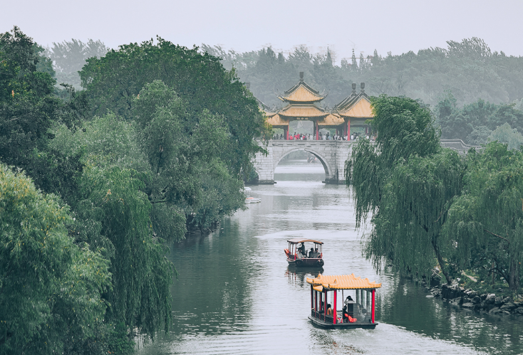 五亭桥,桥上有五个亭子;五亭桥是乾隆二十二年(1757)为迎接乾隆南巡而建,因为建在莲花堤上,所以它又叫莲花桥。瘦西湖原名保障湖,位于江苏省扬州市城区,总面积2000亩,被国务院列为“具有重要历史文化遗产和扬州园林特色的国家重点名胜区”。
