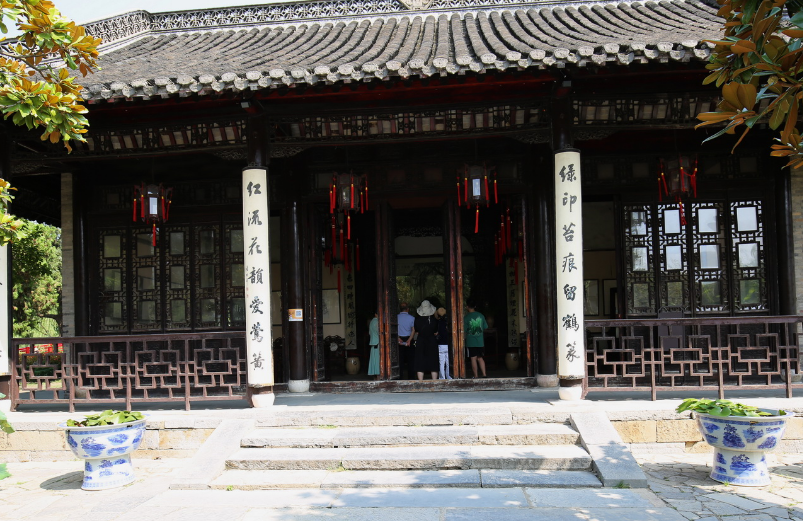 三、徐园徐园在瘦西湖长堤春柳之北,原址为清初韩园桃花坞韩园。民国四年(1915)为纪念为纪念辛亥革命时期的烈士徐宝山军长,构建徐宝山祠堂,名为徐园。徐园占地0.6公顷,小巧玲珑。园中听鹂馆取名来自“两只黄鹂鸣翠柳,一行白鹭上青天”的诗意。