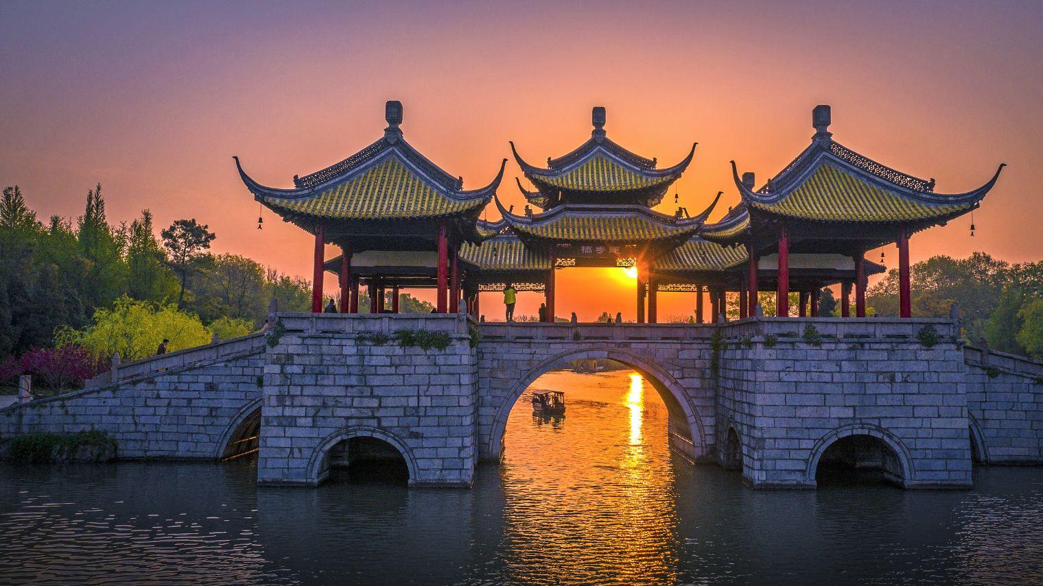 如果把瘦西湖比作一个婀娜多姿的少女,那么五亭桥就是少女身上那条华美的腰带。五亭桥不但是瘦西湖的标志,也是扬州城的象征。中国桥梁专家茅以升这样评价:中国古老的桥是赵州桥,壮美的桥是芦沟桥,具艺术美的桥就是扬州的五亭桥。