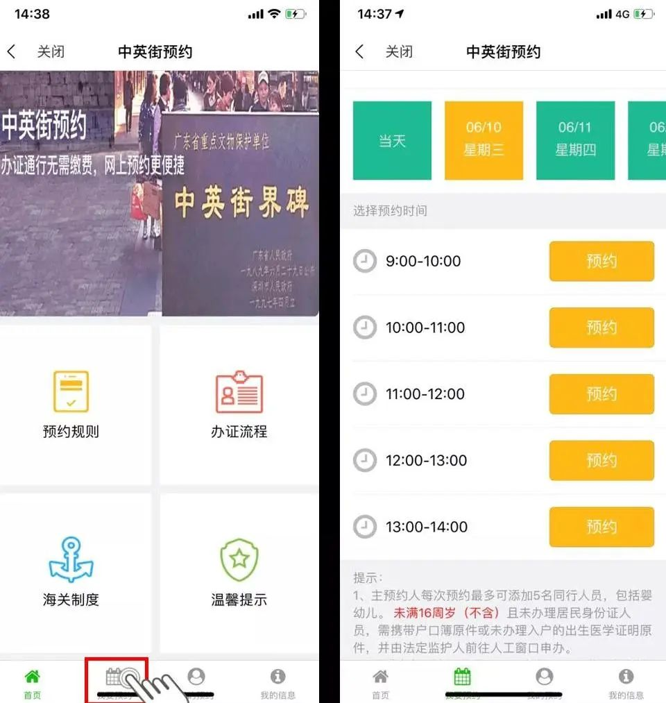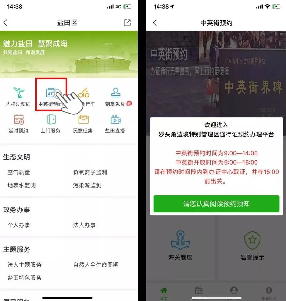 盐田区首页进入“中英街预约”,认真阅读预约须知