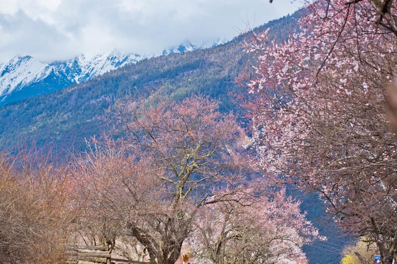 每年的3月下旬4月初是波密县桃花沟的花期,景色愈加漂亮,漫步在乡村公路,两旁满是盛开的桃花,桃花林中,散落着色彩斑斓的藏式房屋,屋前屋后,除了桃花,映入眼帘的还有田野,悠闲地吃着青草的牛群,羊群,人间仙境。