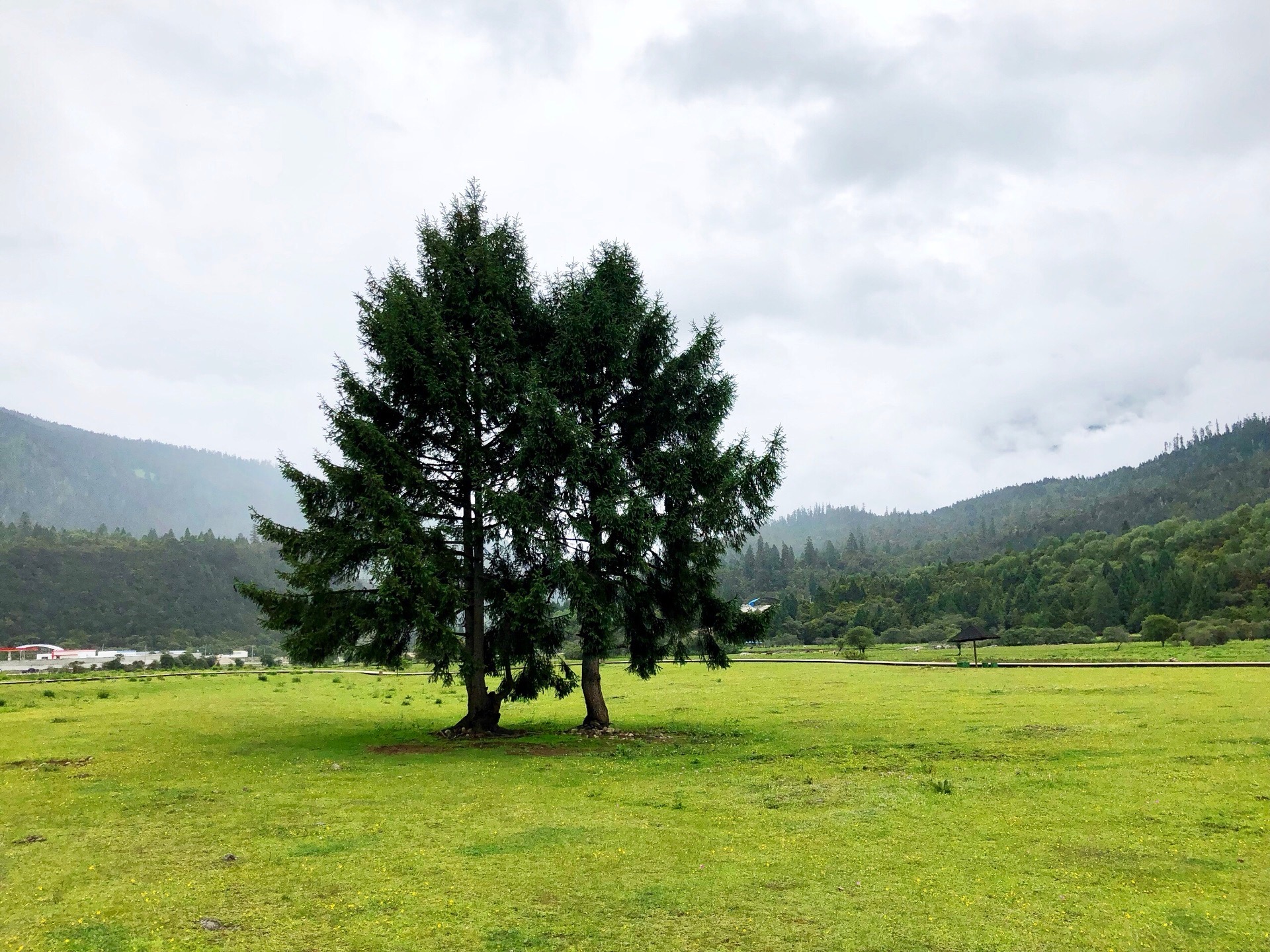 进入鲁朗林海 ,土绿色的苔藓和灌木被墨绿色的松木代替,郁郁葱葱,铺满了一座座山丘。鲁朗小镇如今住宿、餐饮的营业场所都比较齐全,又有优美的风景,很多走川藏线的游客会选择在这里停留。