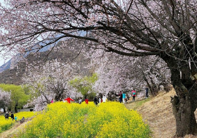 3月的林芝,寒意未尽,却已是花的海洋。远方的雪峰还有皑皑白雪,桃花已如醉霞绯云般地争相斗艳。粉嫩的桃花,在气势磅薄的雪山怀抱中无限柔媚。妖娆桃花,映着蔚蓝云天,美不胜收。
