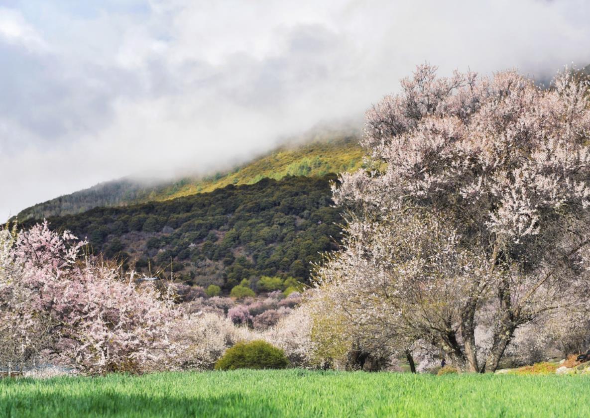 林芝桃花主要分布在318国道沿途、波密、然乌湖、尼洋河风光带、机场至八一镇沿线、拉林高速林芝段以及林芝山南方向靠近林芝段,雪山之下,与云朵相拥,形成密集的桃林,漫步其中,可见雪峰耸立,桃花怒放,美到令人窒息。