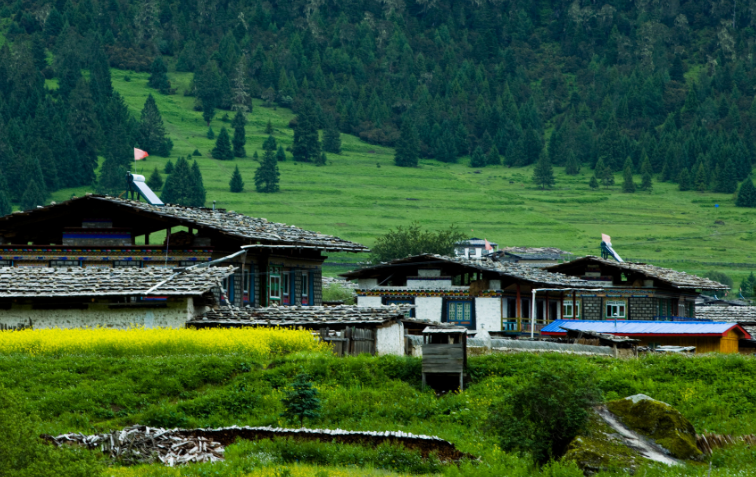 其中鲁朗林海每年4月中旬到6月初,成千上万种野花竞相开放、山间云雾时聚时散;雪山、林海、田园勾画了一幅恬静、优美的“山居图”。