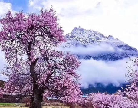 每年的3月下旬4月初是波密县桃花沟的花期,景色愈加漂亮,漫步在乡村公路,两旁满是盛开的桃花,桃花林中,散落着色彩斑斓的藏式房屋,屋前屋后,除了桃花,映入眼帘的还有田野,悠闲地吃着青草的牛群,羊群,人间仙境。