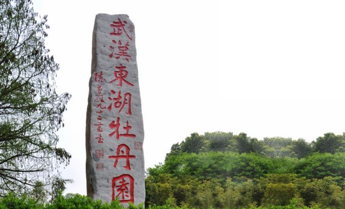 武汉东湖牡丹园林建筑亭廊相接、花王与名家翰墨交相辉映,奇石异草与历代咏牡丹诗词融为一体,牡丹盛开时节,一片花的海洋,花景交融令人陶醉。