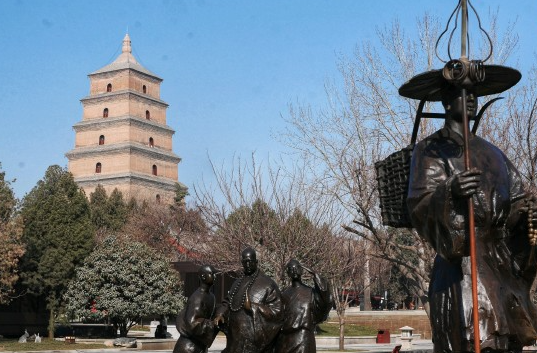大雁塔最初仿西域窣堵坡形制,砖面土心,不可攀登,每层皆存舍利,由玄奘法师亲自主持修建。而后经历代改建、修缮,逐渐由原西域窣堵坡形制逐渐演变成具有中原建筑特点的砖仿木结构,成为可登临的楼阁式塔。这一过程生动地体现了古印度佛教建筑艺术传入中国并逐渐的中国化的过程。大雁塔是唐长安城保留至今的标志之一。其所存石碑“大唐三藏圣教序”和“大唐三藏圣教序记”进一步佐证了大雁塔与丝绸之路佛教传播的历史。大雁塔内收藏的贝叶经也是弥足珍贵的佛教文物。