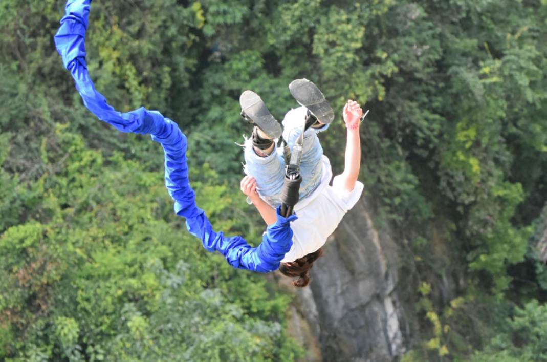 十堰武当山蹦极位于316国道丹江口武当山快乐谷,垂直高度75米。十堰武当山蹦极依山傍水,丛林茂密,远有房屋,近有行人。