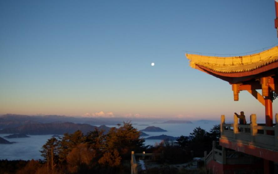 它是中国“四大佛教名山”之一,地势陡峭,风景秀丽,素有“峨眉天下秀”之称,山上的万佛顶最高,海拔3099米,高出峨眉平原2700多米。《峨眉郡志》云:“云鬘凝翠,鬒黛遥妆,真如螓首蛾眉,细而长,美而艳也,故名峨眉山。
