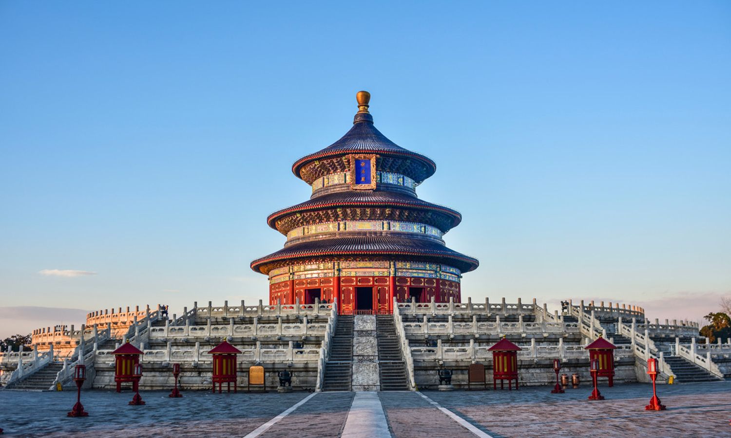 天坛公园,是明清两代皇帝每年祭天和祈祷五谷丰收的地方。天坛以严谨的建筑布局、奇特的建筑构造和瑰丽的建筑装饰著称于世。总占地面积约270万平方米,分为内坛和外坛。主要建筑物在内坛,南有圜丘坛、皇穹宇,北有祈年殿、皇乾殿,由一条贯通南北的甬道--丹陛桥,把这二组建筑连接起来。外坛古柏苍郁,环绕着内坛,使主要建筑群显得更加庄严宏伟。坛内还有巧妙运用声学原理建造的回音壁、三音石、对话石等,充分显示出古代中国建筑工艺的发达水平。天坛公园,是中国保存下来的最大祭坛建筑群。