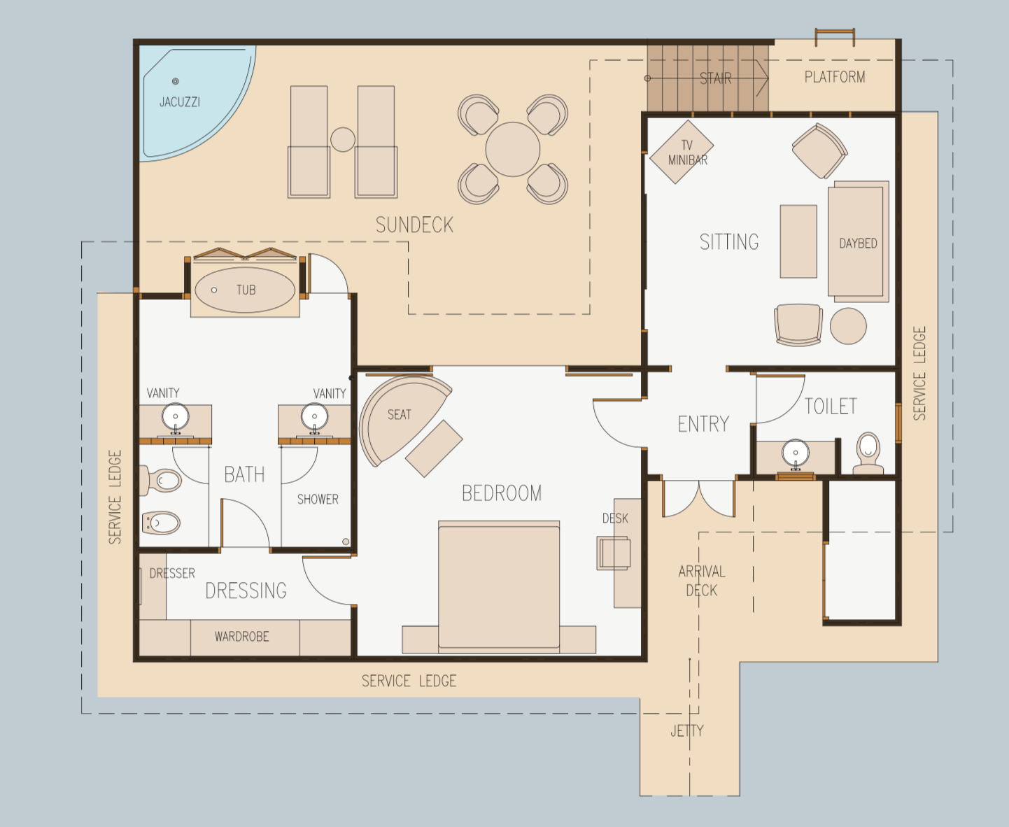 ・ 由于水上别墅的布局原因,住宿不推荐年幼的儿童入住此房型。仅在经父母同意并由父母承担责任的情况下,接受带小孩的预订。