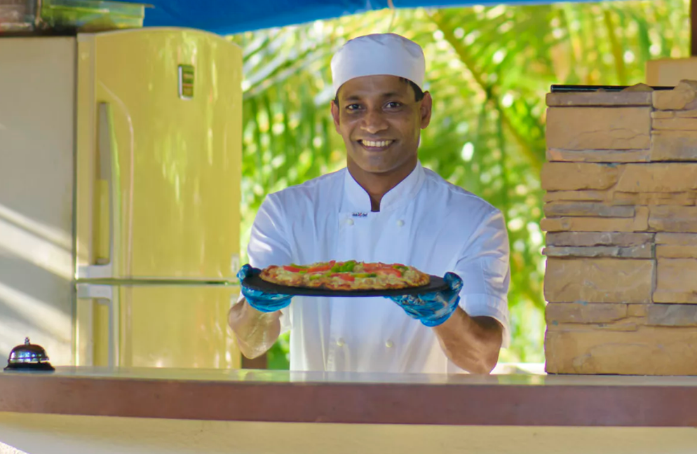披萨餐厅坐落于双鱼岛的主湖旁边,主要供应各种特色披萨,披萨均是选用新鲜食材和应季蔬果、与本地的海鲜烹饪,包括亚洲、地中海、以及西式等多种风味。