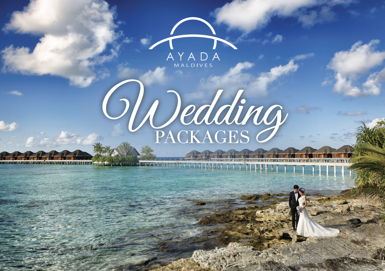 阿雅达岛提供婚礼定制服务,黄金套餐是定制服务套餐之一。套餐包括美丽的新娘花束、夜床布置、花瓣和新鲜椰子汁、三层婚礼蛋糕和一瓶起泡酒等等。