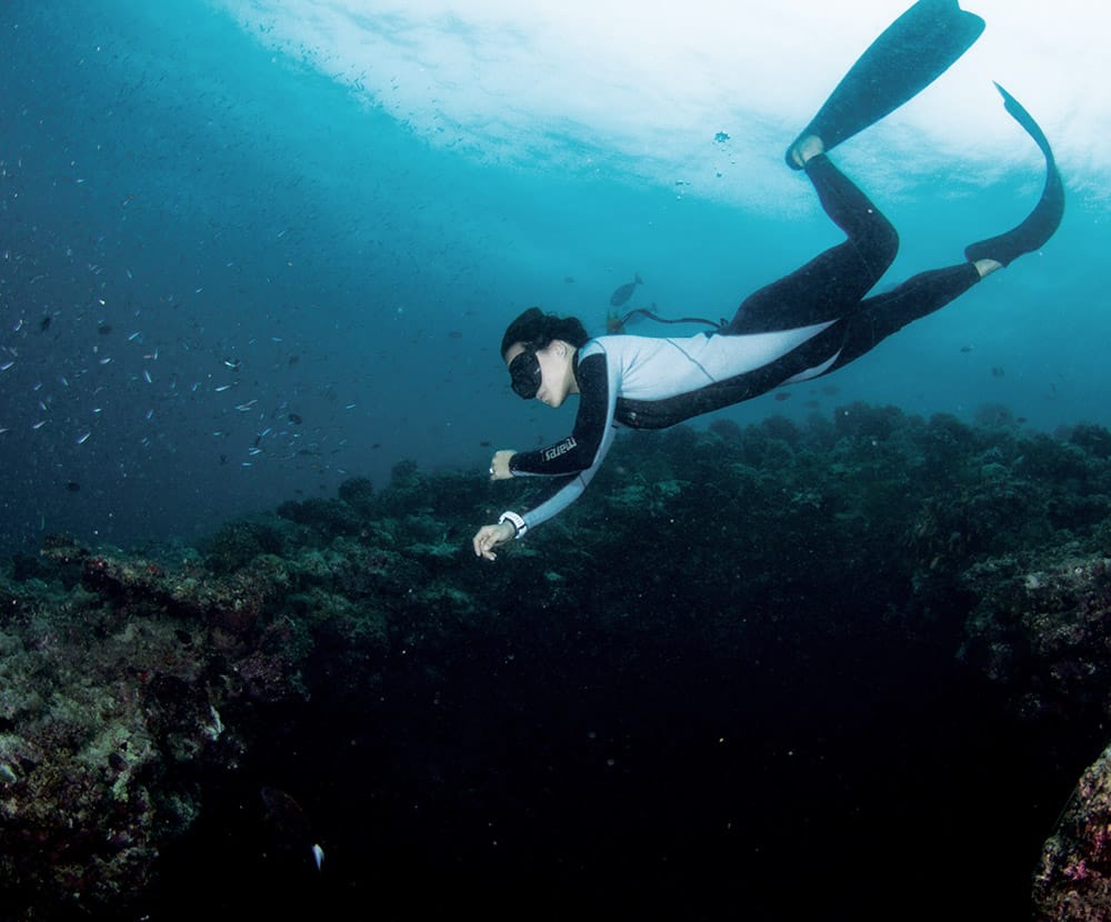 阿米拉位于马尔代夫的潜水胜地芭环礁 Baa Atoll,浮潜沙滩都很棒。可以直接从水屋下去,游几米就是海沟。鱼很多,还可以见到海龟、鲨鱼各种鱼群。岛上有免费浮潜三宝租借,浮潜有专业教练,潜水中心提供从初学者开始的全套PADI水肺潜水课程。浮潜、深潜,在这里都是非常棒的选择。