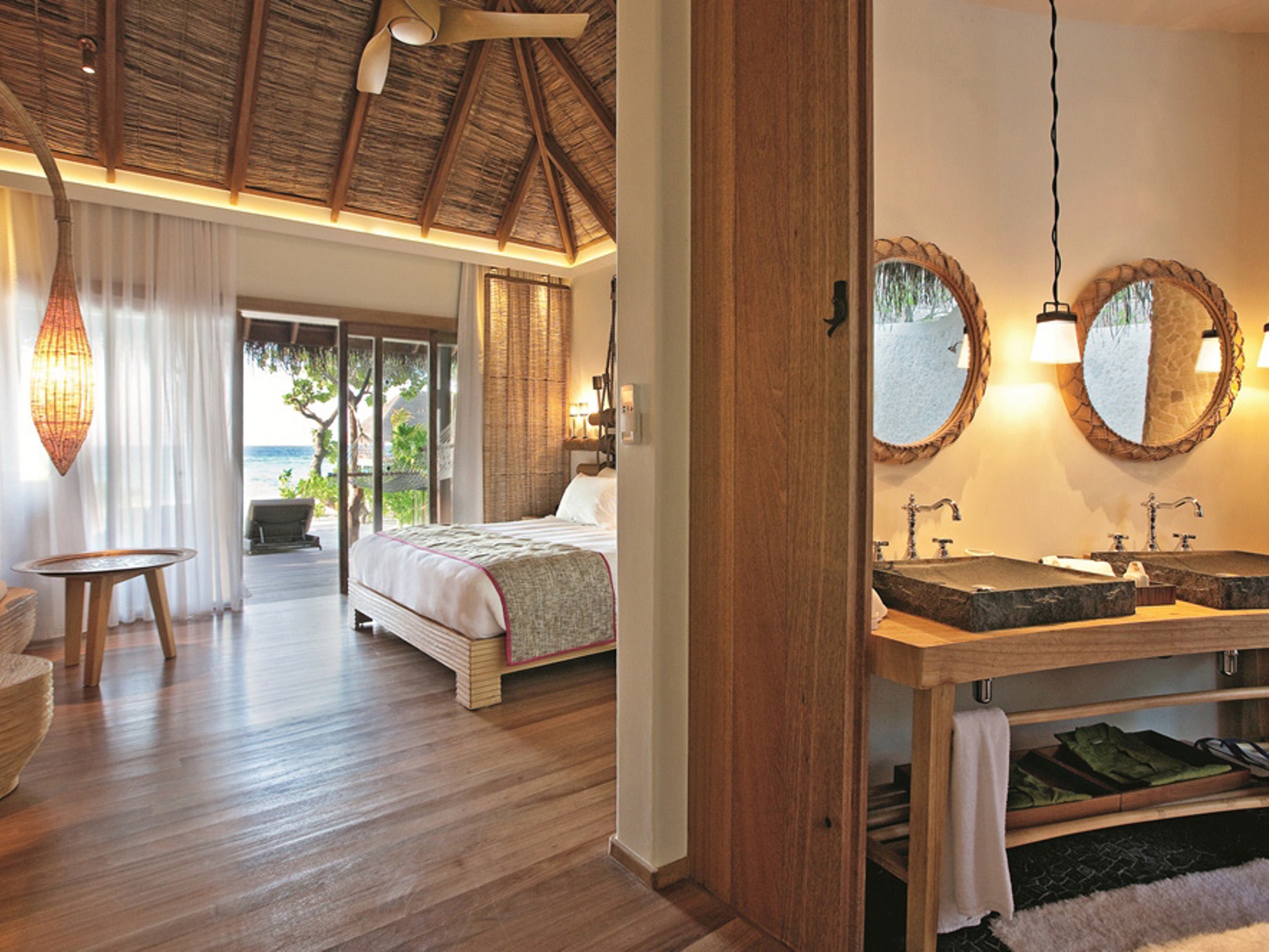 繁星之下,沐浴奢华,仿若悬浮于泻湖之中;新增了木质阳台和吊床,私家露台更带来叹为观止的海洋景色,在这里可以充分的感受到来自热带海洋世界的别样热情。高级水上别墅诠释出一个完美的私密居所。