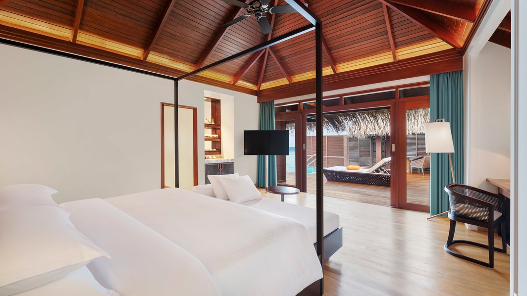 每间宽敞迷人的水上别墅均临水而建,并采用独特的茅草屋顶设计,在印度洋之上打造属于自己的热带天堂。所有别墅均配有带日光躺椅的宽阔露台,并可直通美丽礁湖。