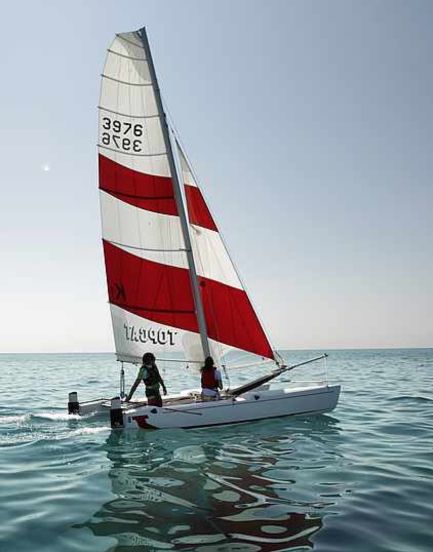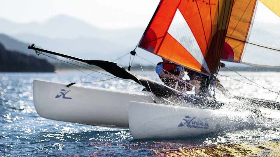 ROBINSON水上运动学习系统遵循VDWS(德国水上运动学校协会)的概念。经过几个早上的训练,你将有机会获得国际认可的VDWS基本双体船许可证,证明你是经验丰富的水手。