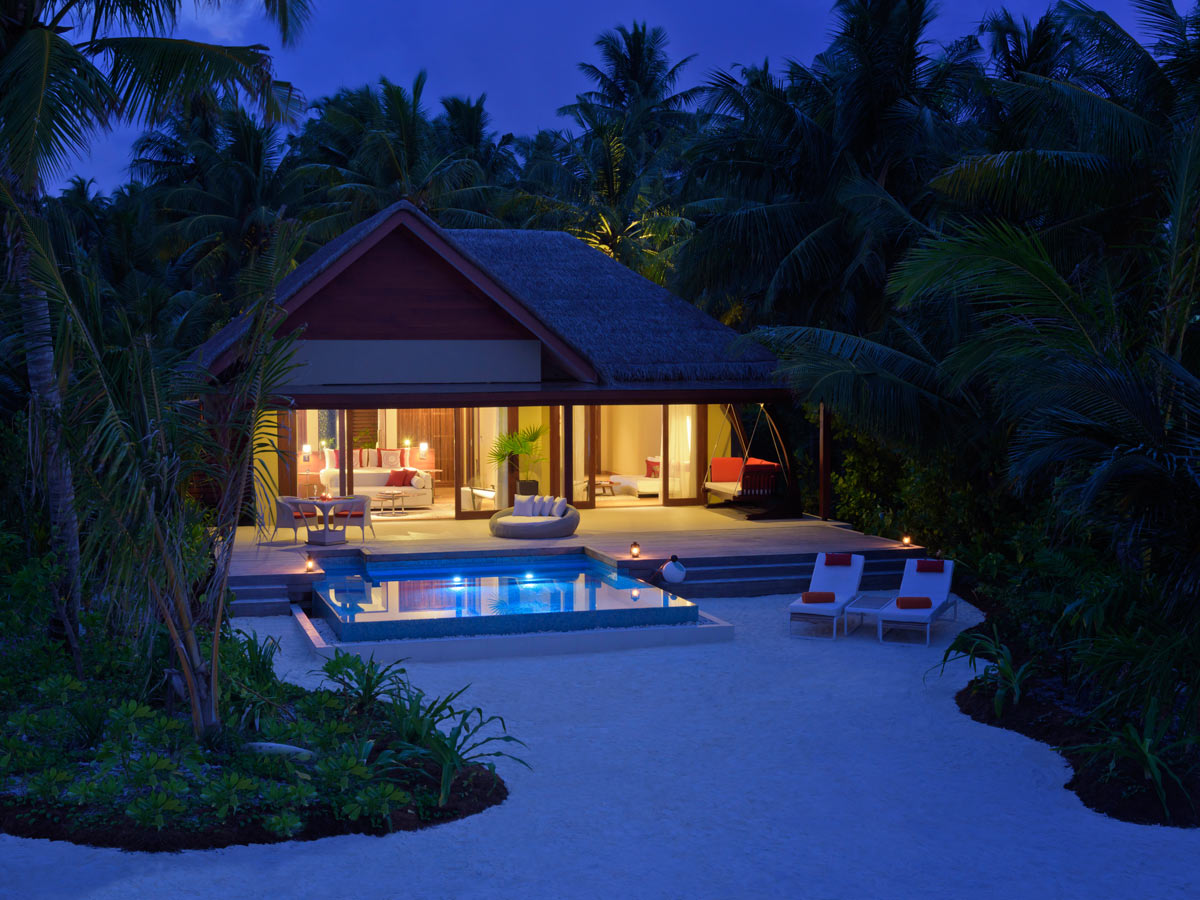 全家人的室内和室外绿洲,通往柔软的沙滩。醒来就可以看到无敌海景和绚丽日出。在私人泳池中嬉戏,或者躺在多尼船形状的秋千里眺望远方。