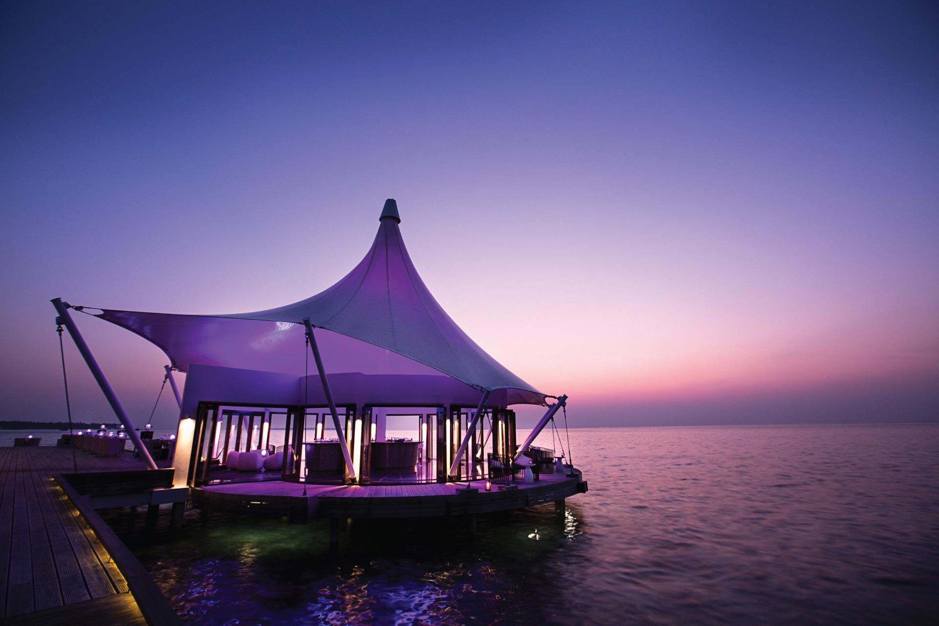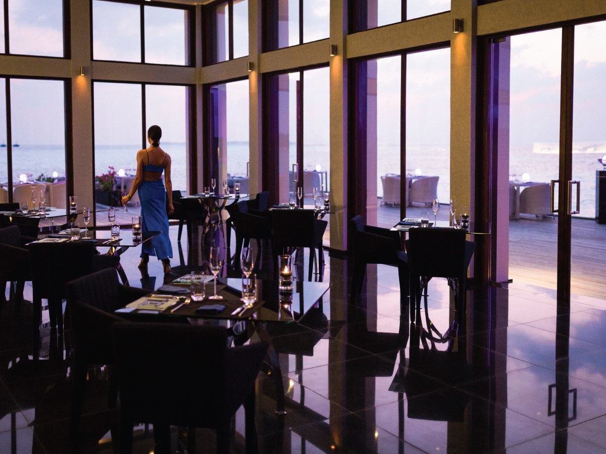 EDGE现代高级餐厅,位于距海岸0.5公里的海上,水上餐厅,只能乘船到达,Edge主打新鲜本地海鲜,包括一些马尔代夫特有的岩礁鱼类,以现代烹饪技巧将菜品升华。餐厅还有专为孩子准备的儿童菜单。