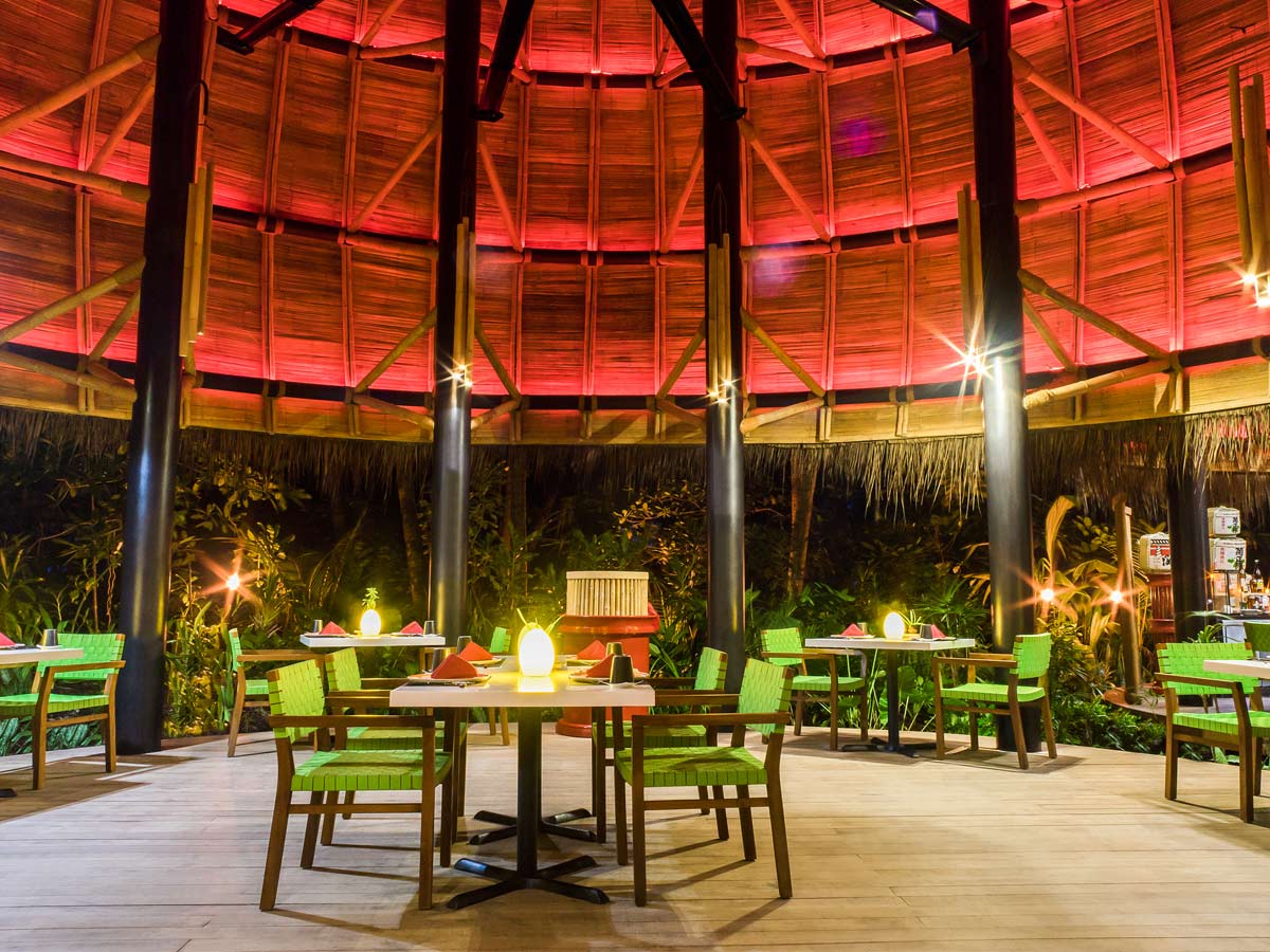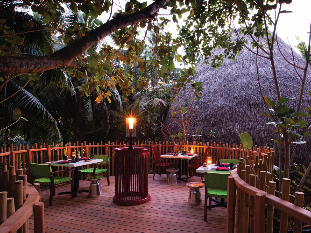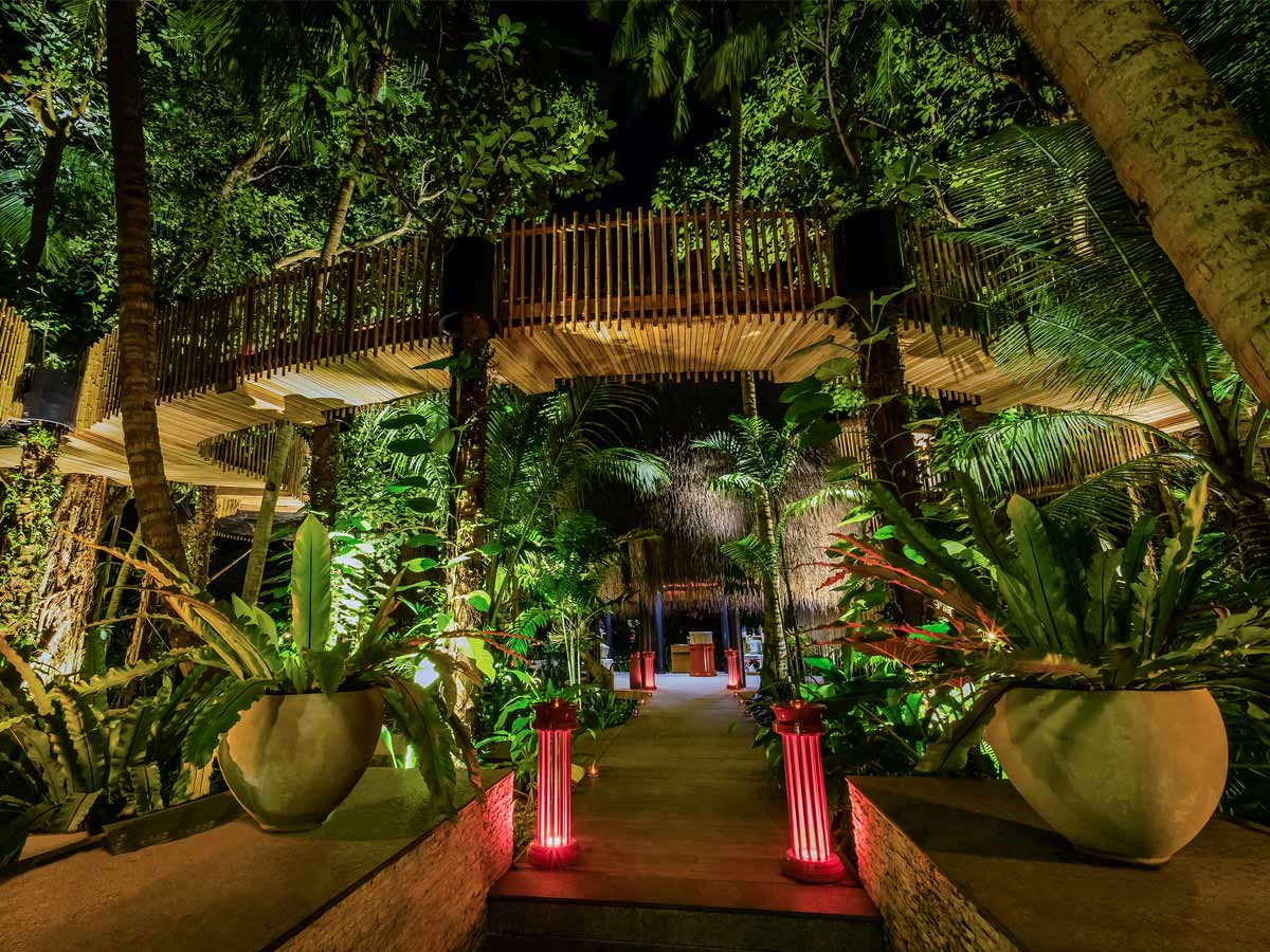 奇幻树顶环境中的亚洲前卫菜品。攀上树屋Nest,享受一场难忘的美食高潮。沿着迷宫般的木板小径,来到树顶上你的私人专座。生鲜鱼片摆放在冰球上,呈现出雕塑般的美感。在马尔代夫最迷人的餐厅之一,泰国、中国、日本和印度尼西亚大厨奉上前卫风格的菜品,装点你的餐桌。