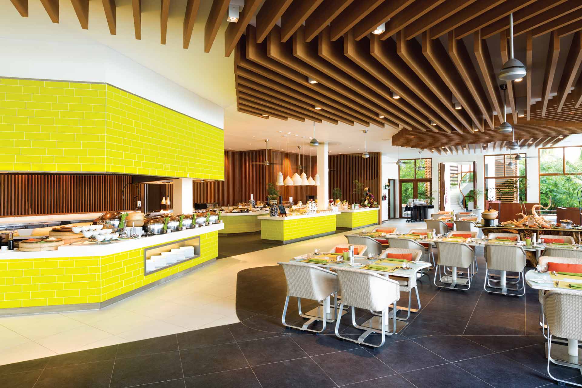 尼亚玛岛度假酒店的Dine-In概念让客房服务达到极致。你可以选择简单的茶点,或收揽全球美味的丰盛大餐。除Dine-In菜单外,客人们还可以自由选择遍布Chill岛和Play岛的九家餐厅的各种美食,送来在别墅内用餐。