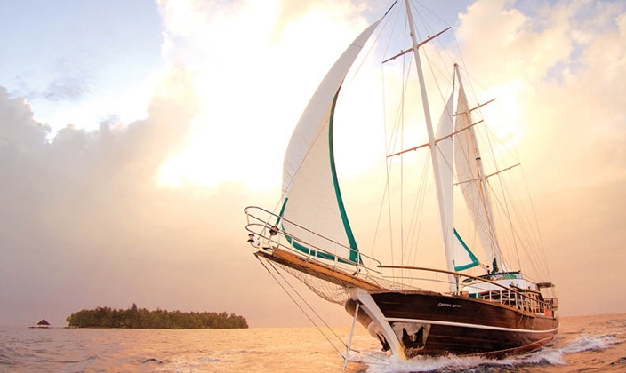 瓦宾法鲁岛是一座充满浪漫的岛屿,乘坐传统的马尔代夫多尼船在泻湖上巡游,与心爱之人一边啜饮香槟,一边欣赏天空变幻出华丽的落日余晖是一次值得珍藏的记忆。