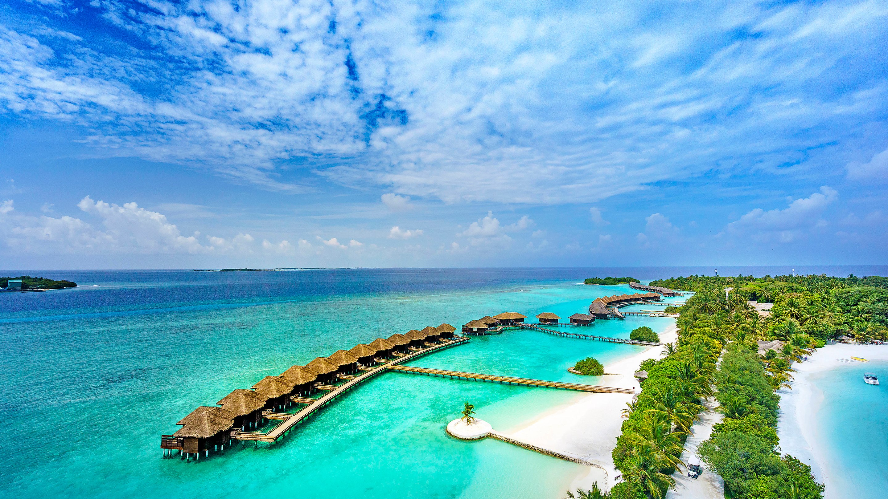 满月岛,英文全名(Sheraton Full Moon Island),岛上生长着众多品种的鲜花,姹紫嫣红、花香四溢。坐落于离马累机场6公里的地方,从机场码头乘坐20分钟的快艇即可到达。这座管状的狭长形岛礁拥有大片郁郁葱葱的椰林,迷人的海滩,美丽的海水,还有宽广的弧形沙滩。水上屋建在清澈的礁湖之上,海滩客房则隐藏在浓重的绿色包围之中。若你是以为细心的旅客,你很快会发现还有个像月牙形状的小岛安静地依偎于满月岛旁,就像一对相亲相爱的母子,显得温情十足,满月岛的名字也由此得来。