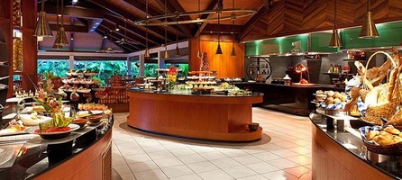 满月岛上有很多餐厅,Feast餐厅是这里的主餐厅,装潢与布置上均跟其它度假村的风格类似。餐厅处于泳池畔一个开放式的茅草亭中,视野很棒。每天供应一日三餐,和各种美味可口的饮品。餐厅提供各种异国风味的水果、新鲜面包与糕点、自制的果酱等等,还有来自欧洲、亚洲各国的美食,你可以在此能够大饱口福。不但有轻松闲适的就餐氛围,还可以在晚餐的时候依照每日主题提供多种风味美食。