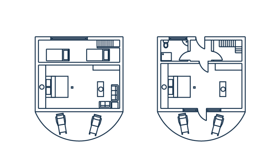 双人间设有连接起居室,阁楼设有2张单人床,浴室和露台。