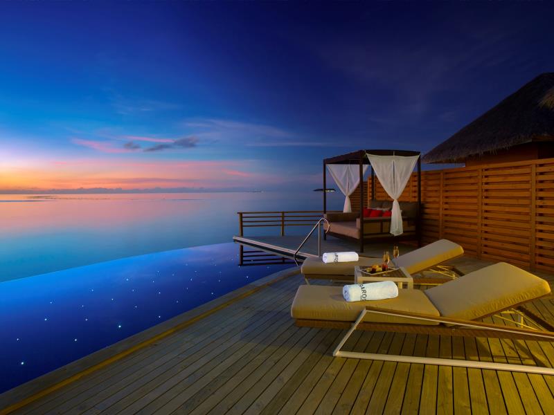 这些独特的套房蜿蜒穿过茂密的树叶,拥有木地板和高高的天花板,采用传统的马尔代夫设计概念。毗邻的休息室设有55英寸电视,可收看电影和互联网,还有一张舒适的沙发供客人放松身心。滑动玻璃门通向宽敞的木质甲板,非常适合在19英尺x 10英尺长的游泳池旁边的星空下享受日光浴或私人用餐(带冷热按摩浴缸),装饰有光纤灯,在晚上营造出神奇的氛围。