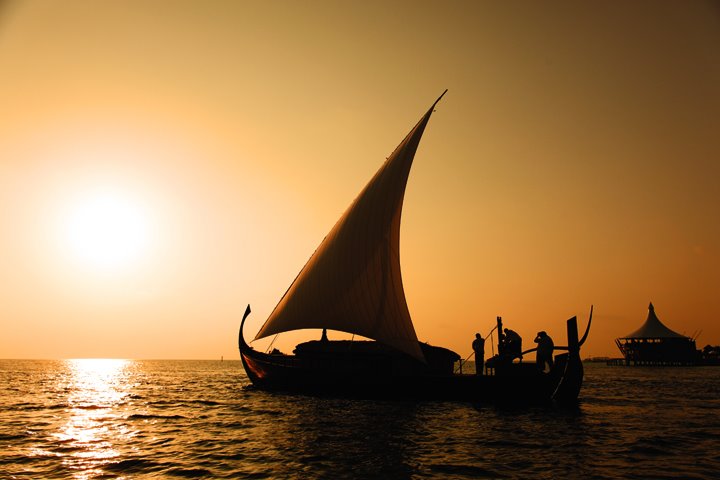 这艘19米长的船——“Nooma诺玛”号仿照传统的马尔代夫多尼号帆船,船首造型优美,单桅帆巨大,屋顶铺着茅草,船上有四名船员。它是暗礁潜水、日落航行或两人浪漫晚餐巡航的浪漫之旅。
