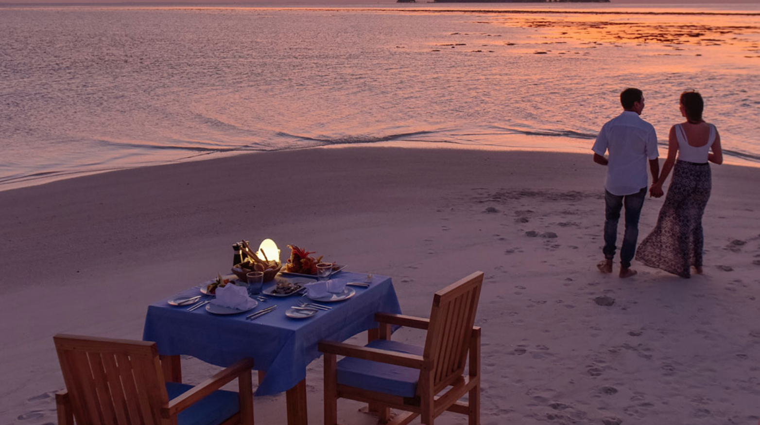 在海滩上一个僻静的地方享用烛光四道菜晚餐,庆祝浪漫。陶醉于彼此的情感之中,同时酒店还提供额外的特别浪漫餐。