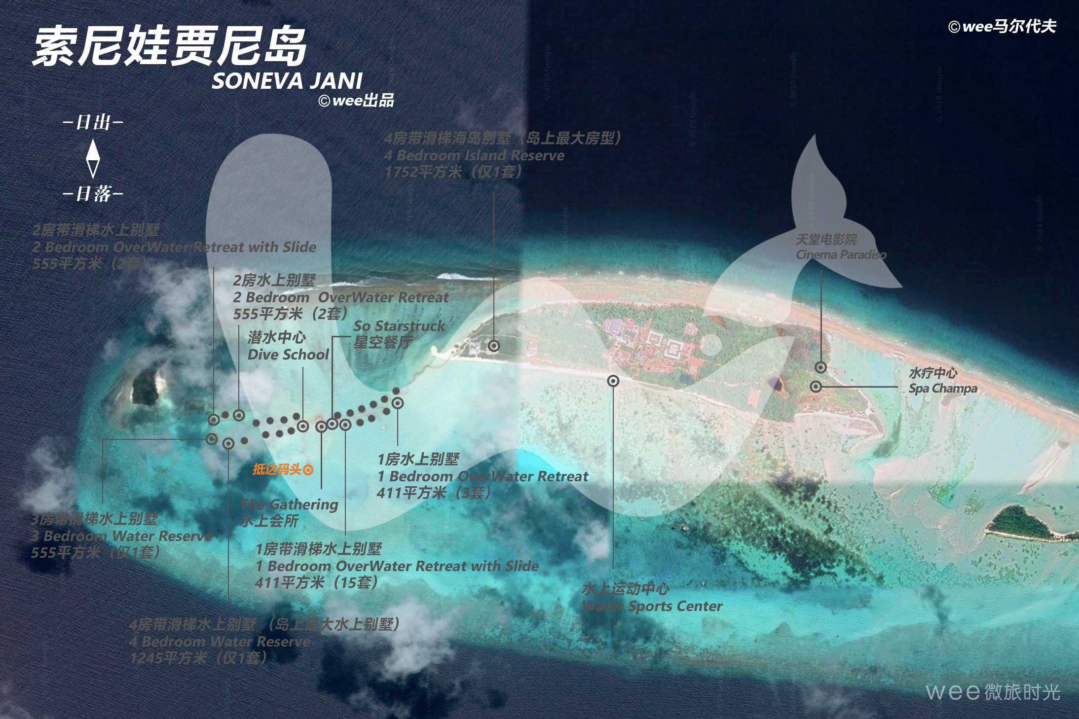 索尼娃贾尼岛位于诺鲁环礁,距离马累机场160公里,乘坐水上飞机需要45分钟。