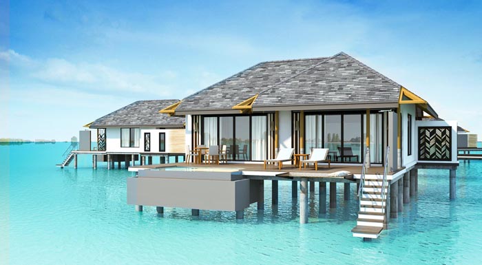 想象一下,清晨醒来,你发现自己正处于碧海蓝天之中,享用完早餐,你可以在私人露台上沐浴马尔代夫的晨光,或躺在水上吊床上远眺远处的风光。温度升高的时候你还可以跳入私人泳池中或沿着楼梯到海中欣赏珊瑚。可以在露台上享用冷饮或浪漫晚餐,夜幕降临的时候你还可以伴着印度洋的海浪声入睡,第二天起来再享受一遍人间天堂一样的度假体验。