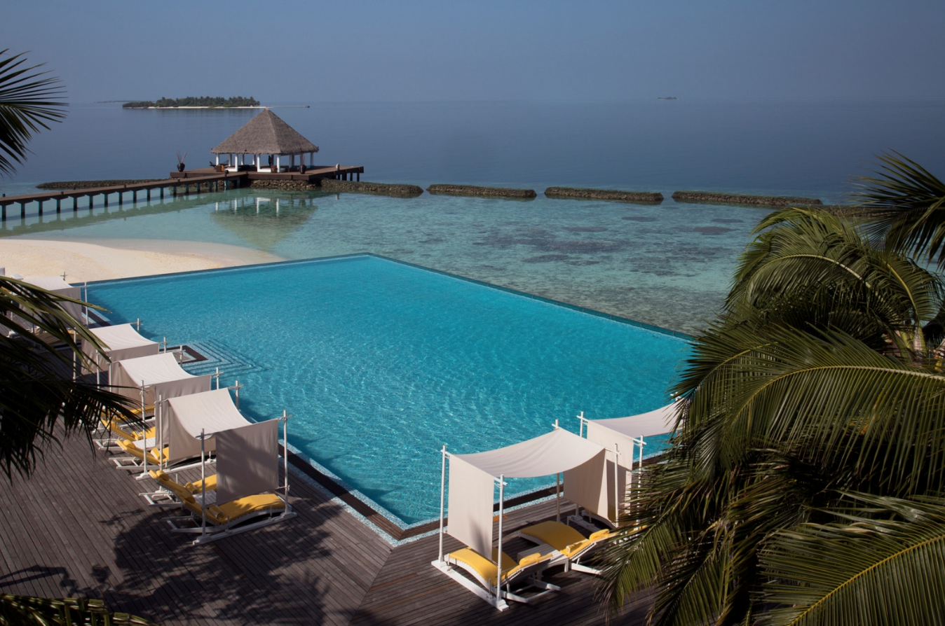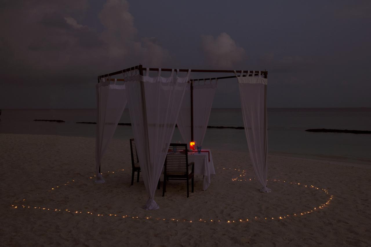 这是浪漫情侣的终极活动,工作人员在海滩上设置了一个凉棚,让客人在温柔的金色烛光下享受星空下的亲密五道菜晚餐。